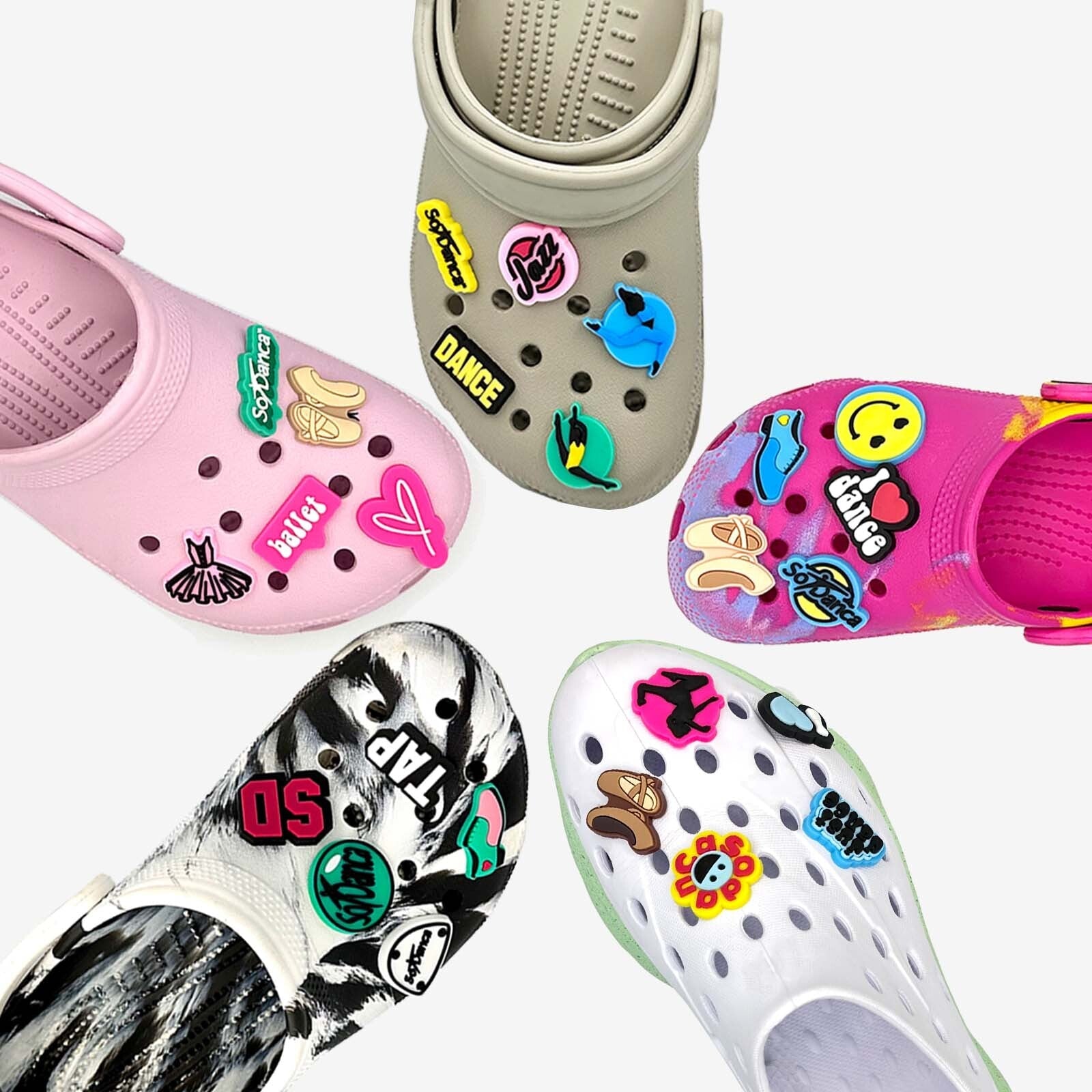 Ballet, jazz, and tap shoe/sandals charms are like the ultimate footwear flair party, where your humble shoes or sandals, get a makeover that's one part dance, one part style, and a whole lot of personality! Just imagine popping these charms and suddenly you've turned your shoes into a performance stage. The ballet charm pirouettes, the jazz charm grooves, and the tap charm clicks and clacks with each step. It's as if your feet have become a chorus line of dancers, putting on a show wherever you go.