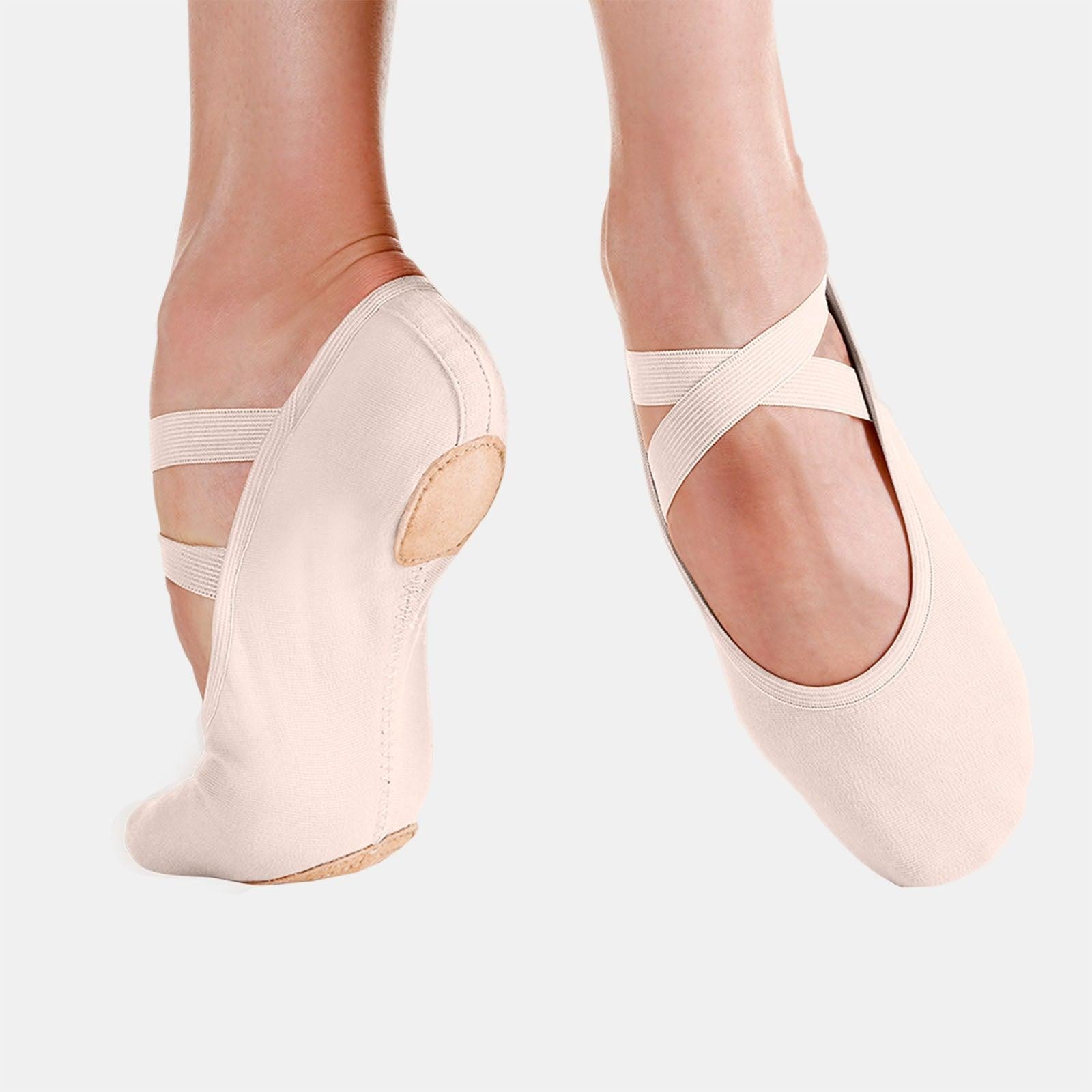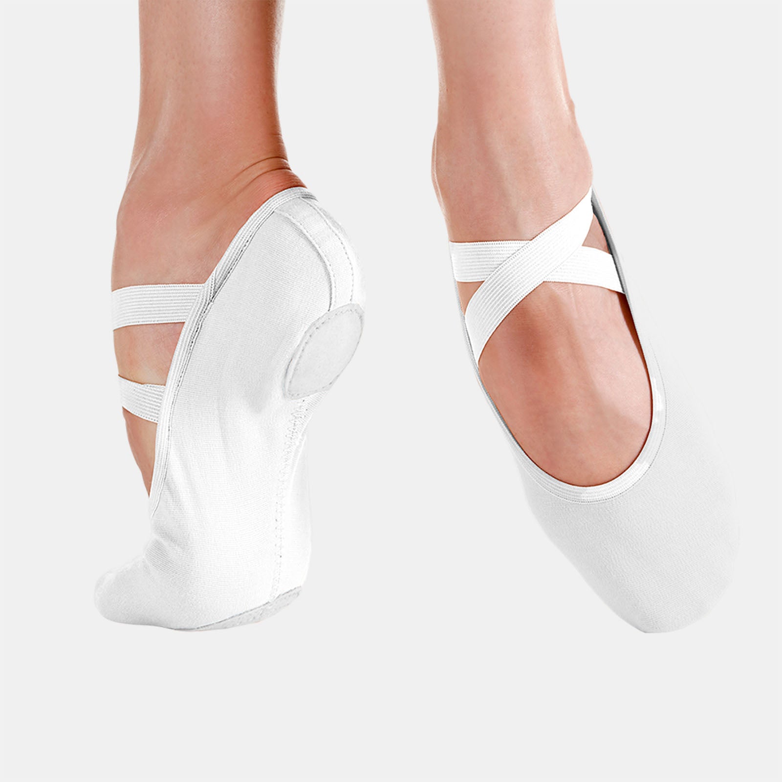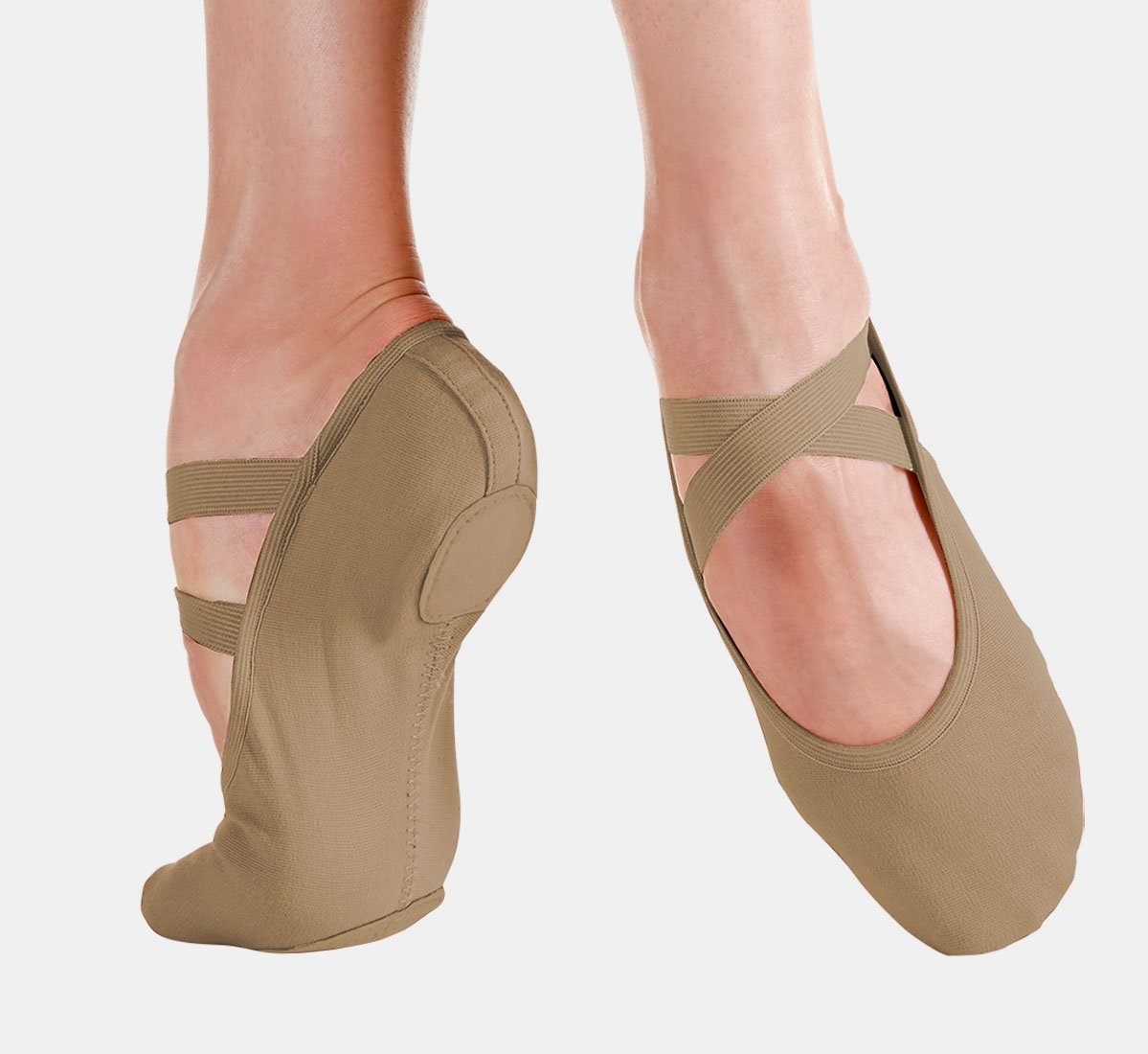 • Superior fitting stretch canvas split sole cut from a single piece of fabric creating a left and right foot. This allows for the shoe to mold to the dancers feet