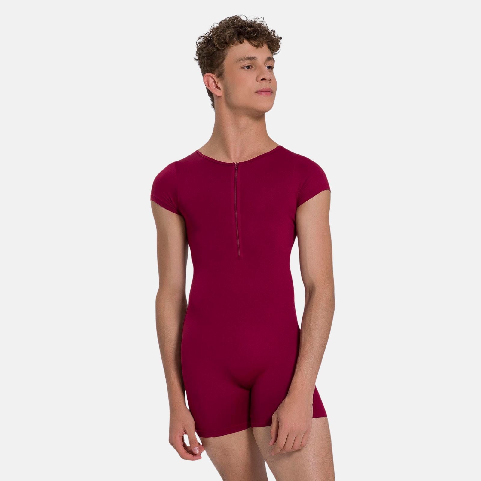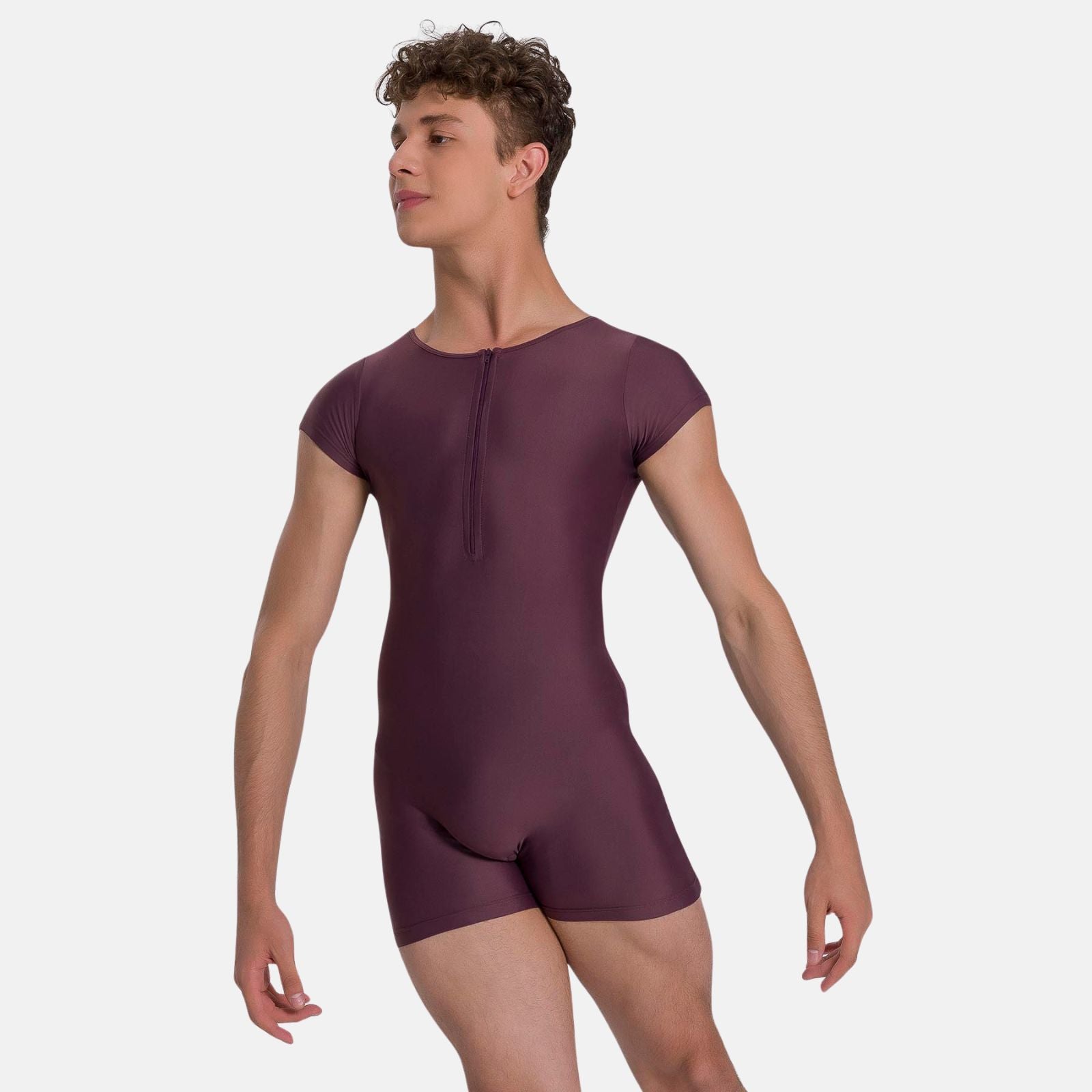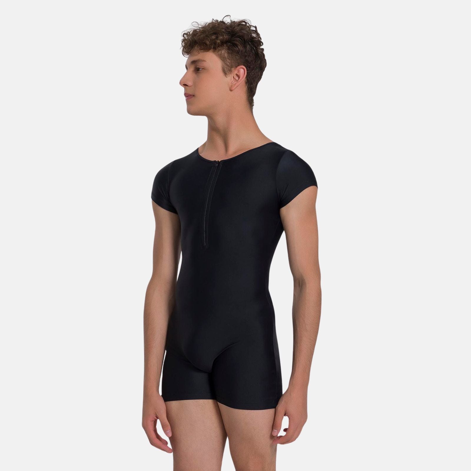 Men Cap Sleeve Biketard with Zipper Detail