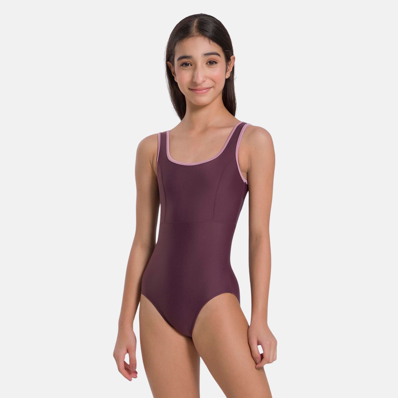 Young dancers will love this vibrant two-tone leotard with modern mesh spandex details. The eye-catching design and comfortable microfiber fabric inspire creativity and confidence in every movement.