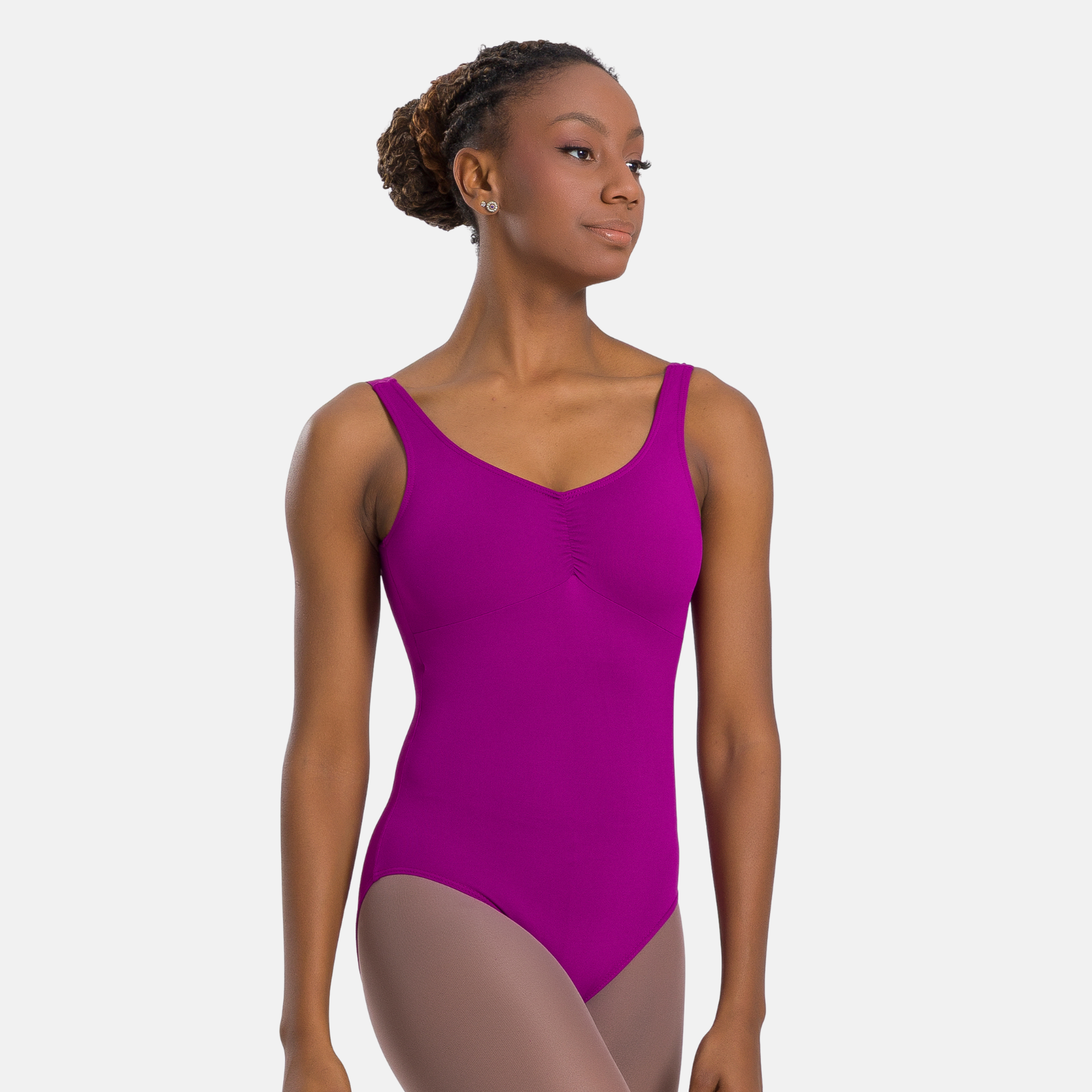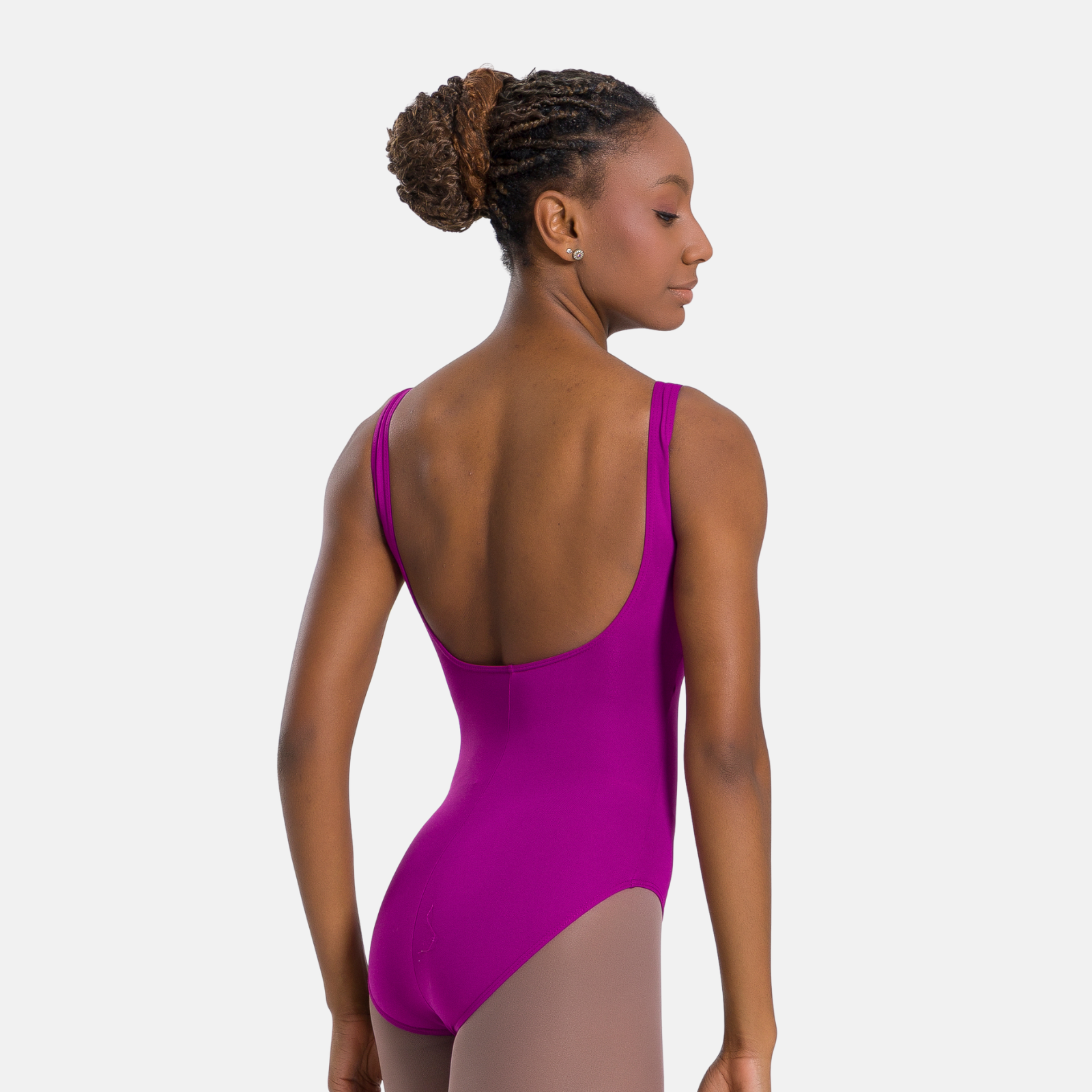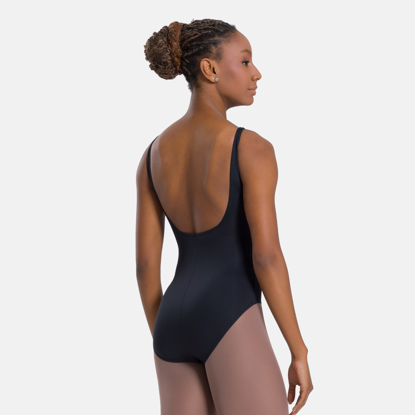 This stunning adult leotard is fit for a queen. The delicate seams, pinch, and scoop back help dancers feel like the beautiful artist they are.