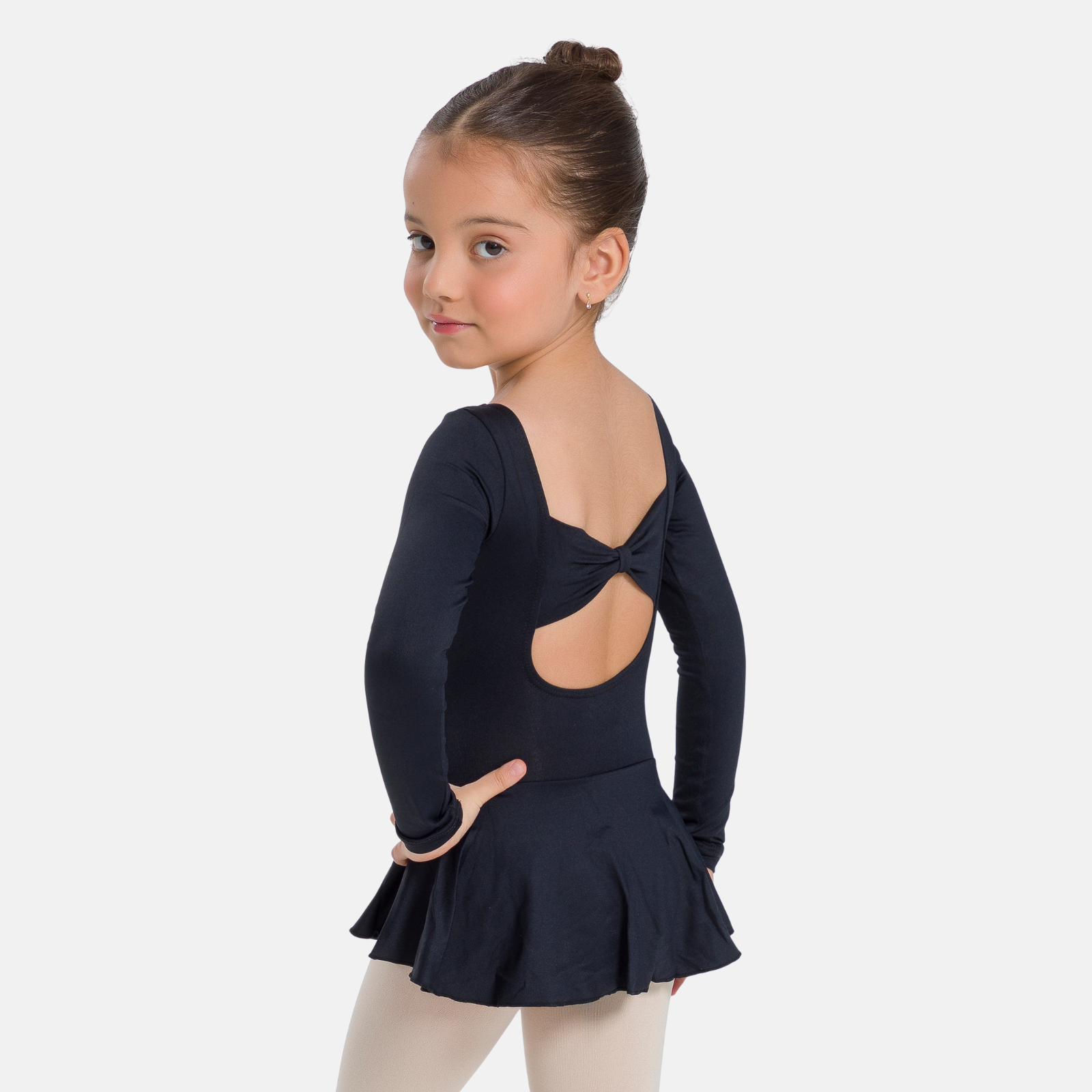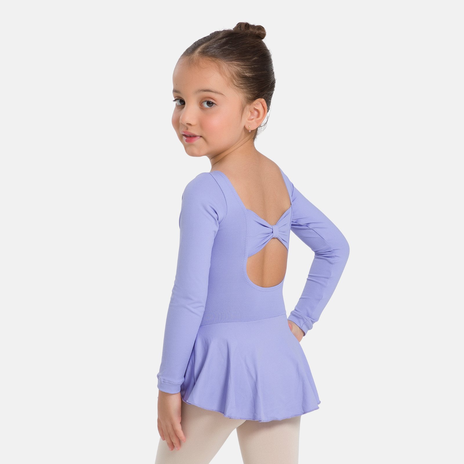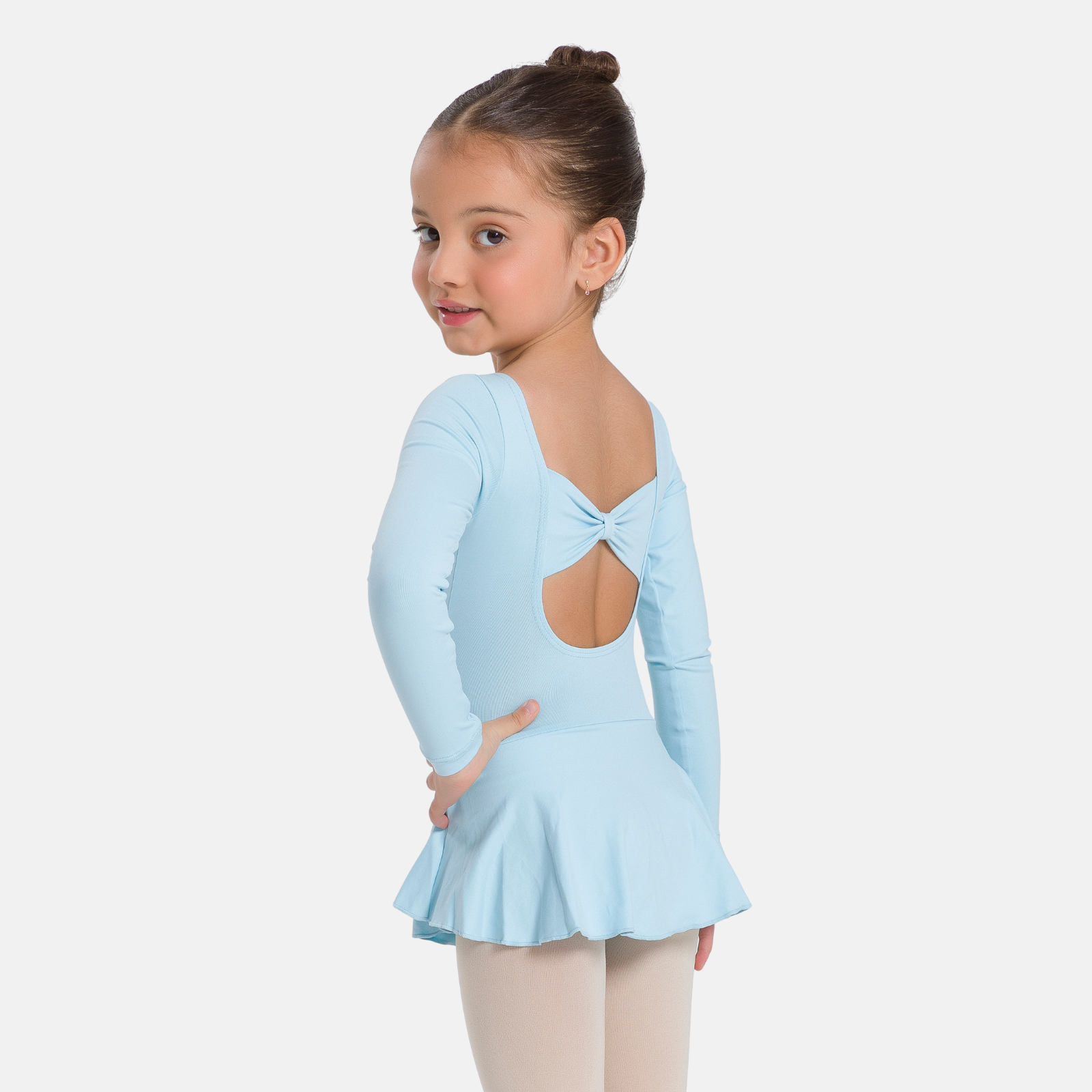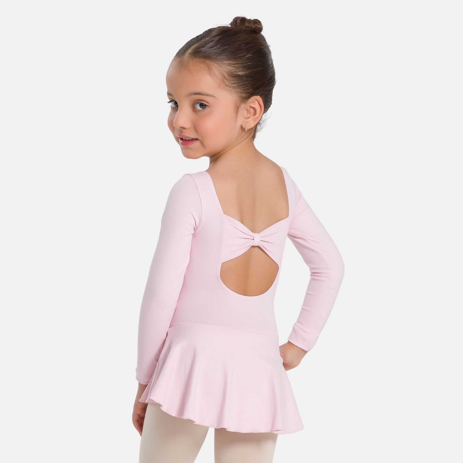 Twist and twirl in the adorable Gillian long sleeve dress. Your little dancer will love the added touch of a bow on the back! This adorable kids’ ballet leotard features sweet long sleeves and a flowy attached skirt that’s made for spinning. Soft, comfy, and oh-so-classic—it’s perfect for tiny ballerinas taking their first magical steps into dance class!