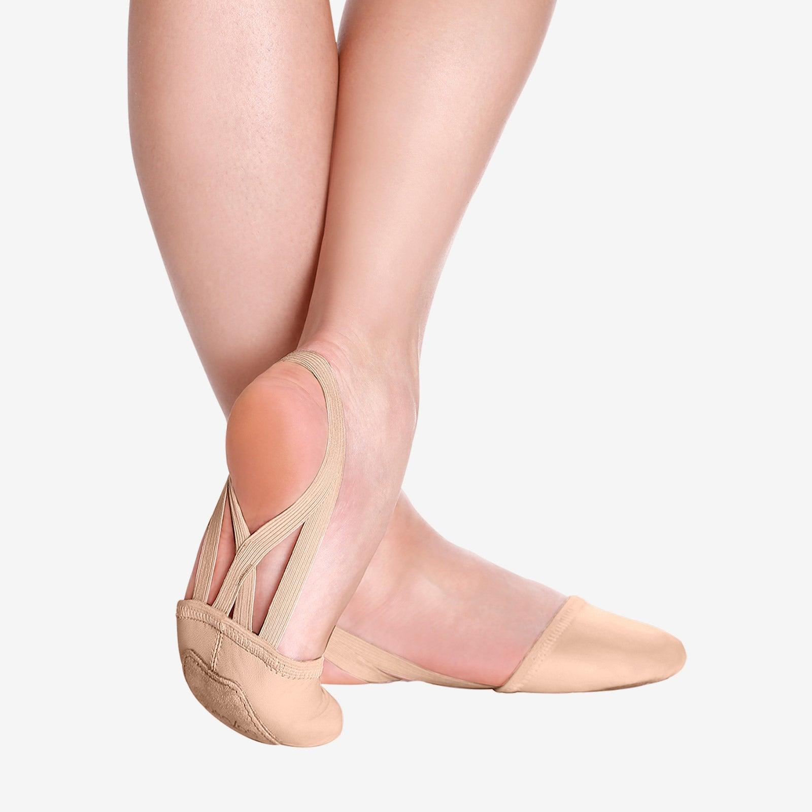 The Só Dança Mischa BA42 is a classic leather half-sole built for dancers who want both protection and floor sensitivity. The smooth leather upper gives your toes coverage and durability, while the full suede pad under the ball of the foot provides excellent grip and strong connection to the floor. Double elastic straps securely hug the heel, and the slip-on design makes it easy to put on and remove—perfect for modern, contemporary, or lyrical styles.