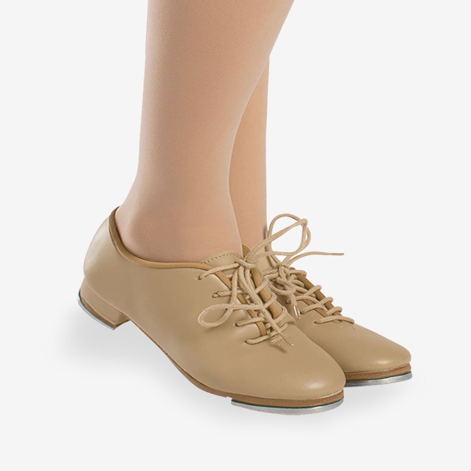 Get ready to make some noise—in the best way possible. This adult Vegan Oxford lace-up tap shoe brings comfort, style, and sharp sound together in one sleek, cruelty-free package. Made with smooth vegan leather and cushioned lining throughout, it’s built for long rehearsals, confident performances, and everything in between. The flexible molded sole keeps you light on your feet, while the riveted high-quality taps make sure every shuffle, flap, and time step is crisp and clean. Available in classic Black, warm Tan, and rich Caramel—and yes, it comes in child sizes too, so the whole crew can match. It’s proof that you don’t need leather to bring the rhythm.