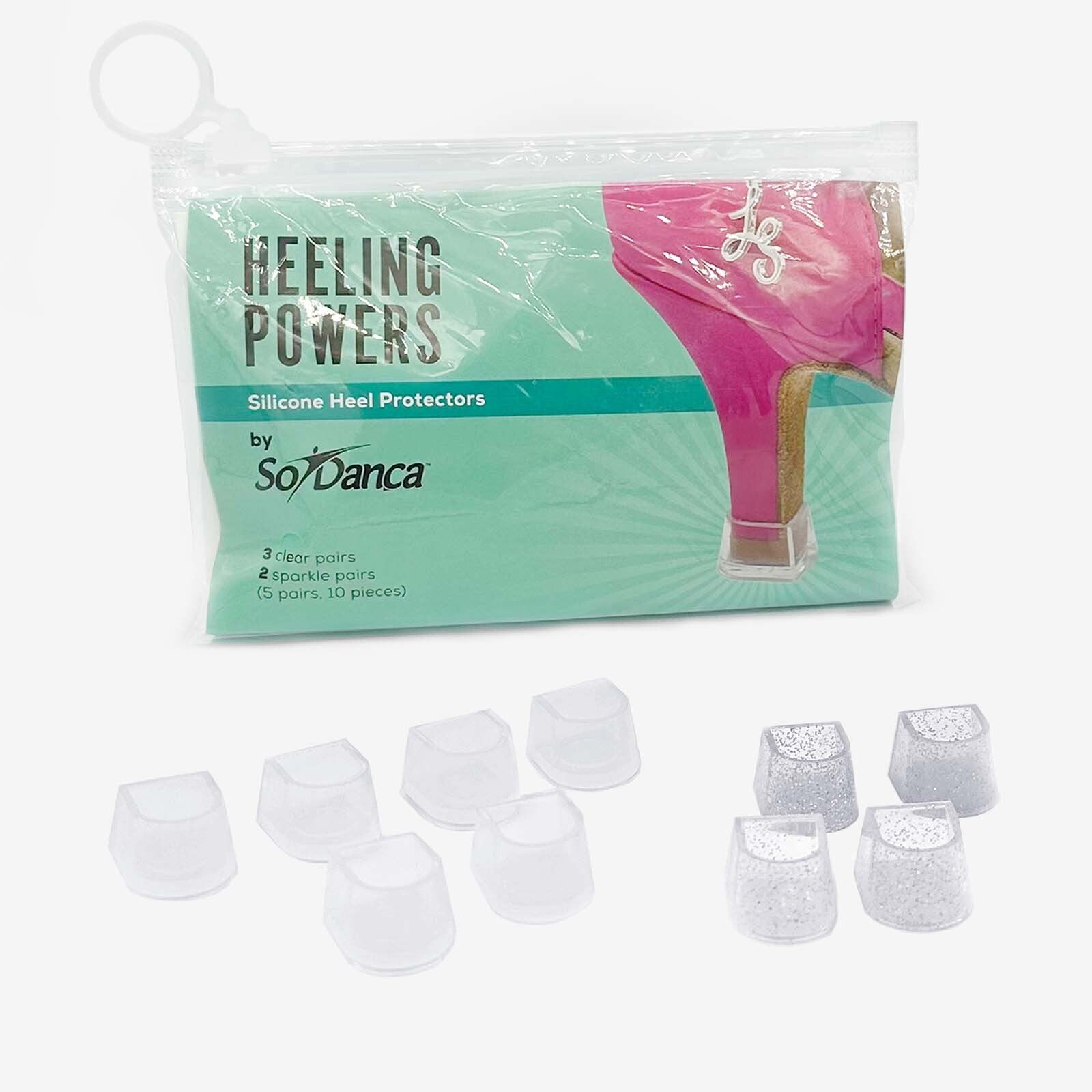 - Heel tips for 5 shoes. 3 clear pairs, 2 sparkle pairs (5 pairs, 10 pieces)