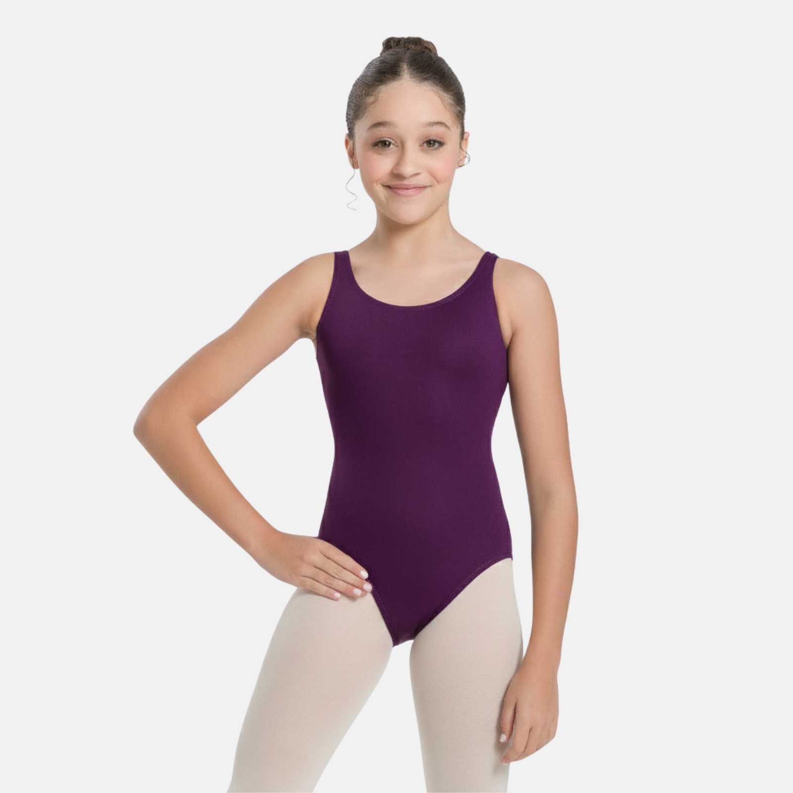 This leo is made from soft, body-hugging microfiber that has an "oh' so comfortable" fit and feel. Featuring a modest scoop neck with large gathered straps that start at the side seam, this tank is a studio classic. You’ll have coverage and control from every angle.