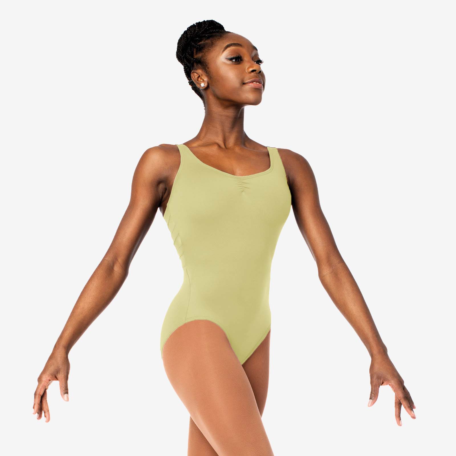 You’ll be ready to dance the moment you slip into this elegant, feminine tank leo made of easy-moving microfiber. The Josephine's wide straps, along with the pinch front and back detailing, help you look and feel confident as you dance the day away.