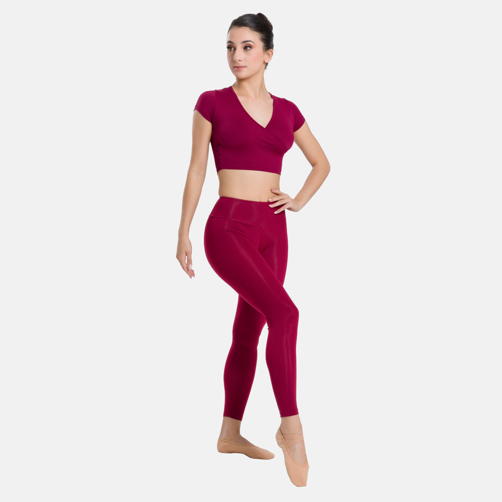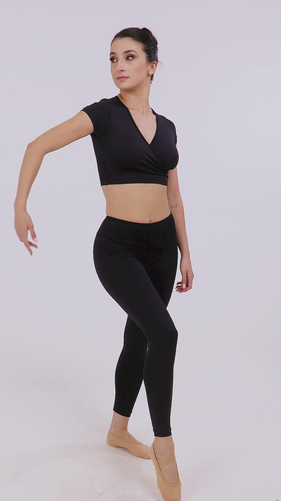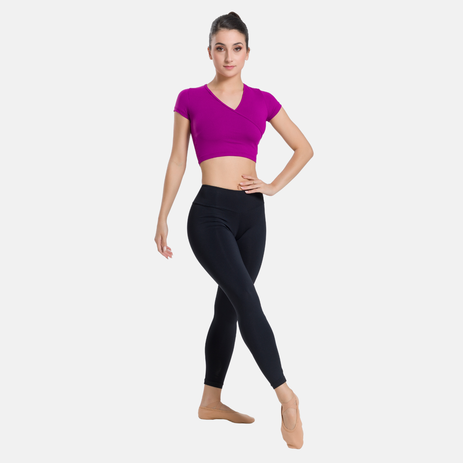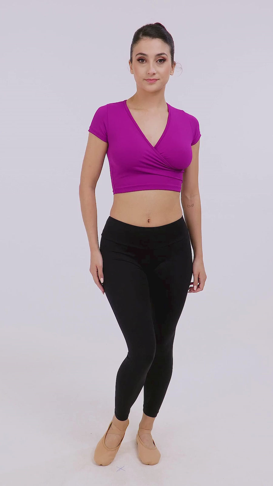 Our Adult Mock Wrap Top with short sleeves is a versatile and feminine piece that is perfect for dancers of all levels. The mock wrap design offers a flattering and elegant look, while the short sleeves provide coverage without sacrificing mobility. Made from high-quality material, this top is both durable and stretchy, allowing for a full range of motion.