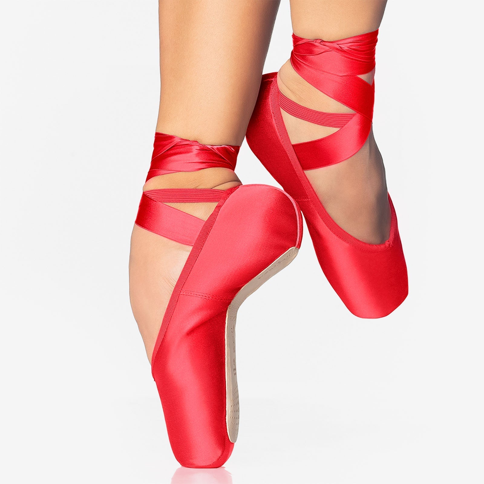 Internal foam toe pads, ribbons, elastics and leather toe covers are included